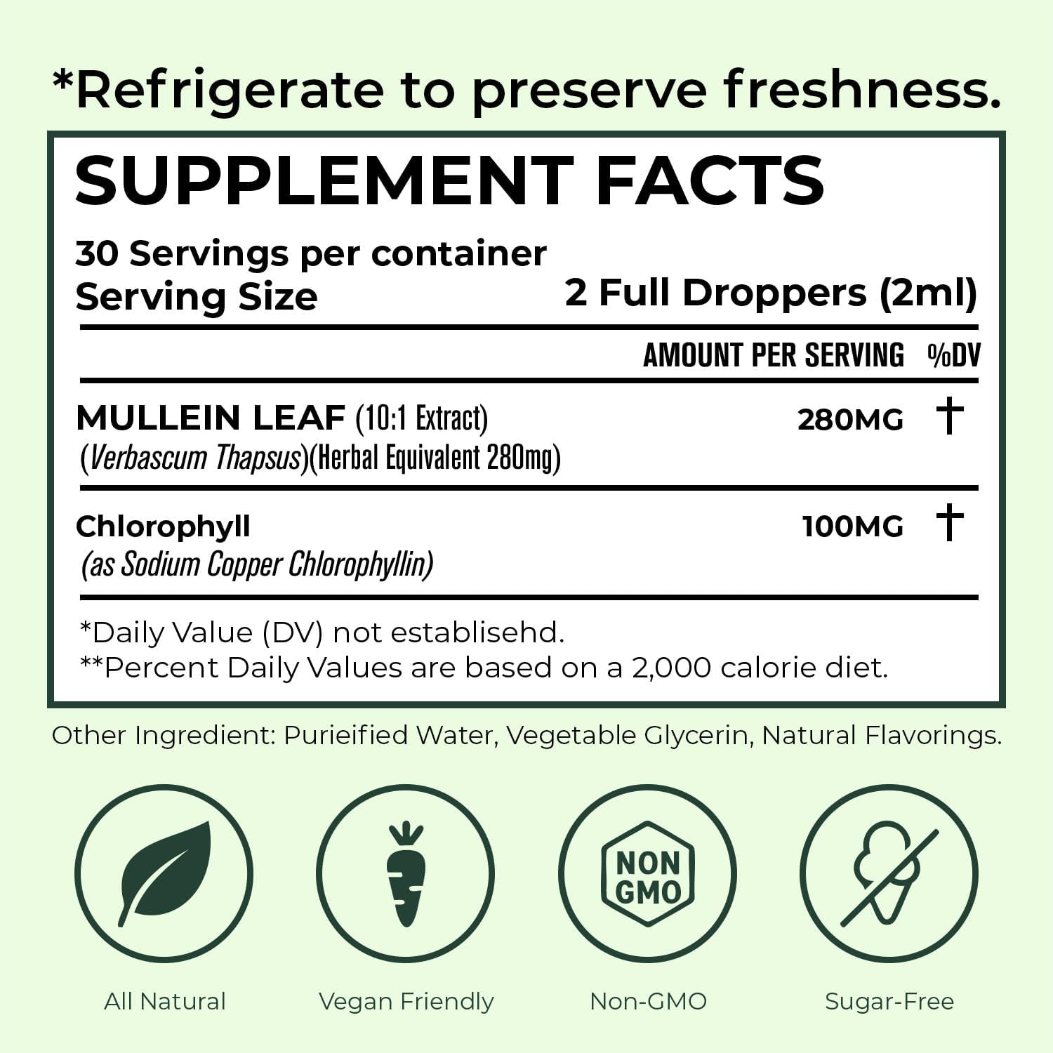 BetterLungs® is a scientifically crafted respiratory supplement designed to support lung function and promote clear breathing. This unique formula harnesses the traditional wisdom of mullein leaf—known for its respiratory benefits—with chlorophyll's natural detoxifying properties. The alcohol-free liquid delivery ensures quick absorption, making it ideal for daily maintenance or seasonal respiratory challenges. Whether you're an urban dweller, allergy sufferer, or fitness enthusiast seeking optimal lung capacity, BetterLungs® provides gentle, plant-based support.